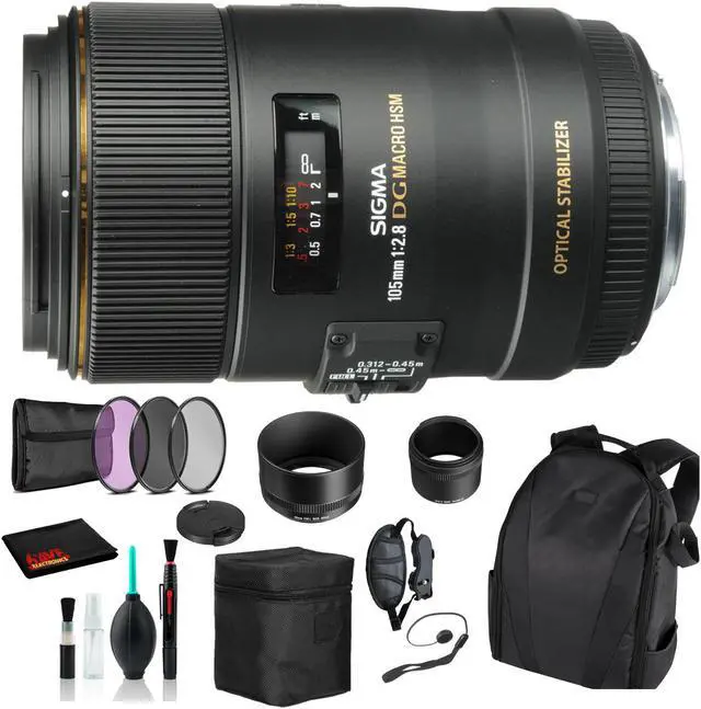 This large aperture medium telephoto macro lens offers advanced performance of close-up photography. Sigmas own proprietary OS (Optical Stabilizer) system enables handheld close-up photography. A Special Low Dispersion (SLD) lens and one high refractive index SLD lens provide excellent correction for all types of aberration and distortion. A floating focusing system moves two different lens groups in the optical path to different positions. This system compensates for astigmatic aberration and spherical aberration and provides extremely high optical performance from infinity to 1:1 Macro.The Super Multi-Layer Coating reduces flare and ghosting, providing high contrast images. It is also possible to use this lens with Sigma's APO TELE CONVERTERS. The HSM (Hyper Sonic Motor) ensures quiet and high speed autofocus as well as full-time manual focus capability. This lens features a rounded 9 blade diaphragm creating an attractive blur to the out of focus areas of the image.
