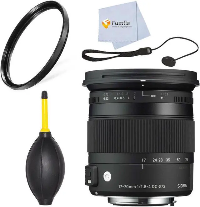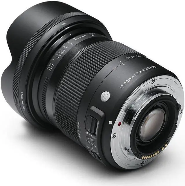 • 17-70mm focal length. F2.8-4 maximum aperture; F22-22 minimum. Image stabilization. 72mm filters. 0.22m/8.66" minimum focus / Compatible with APS-C format DSLRs / Compatible with Sigma's USB Dock / Minimum focusing distance of 22cm/8.6in throughout the entire zoom range / Maximum magnification ratio of 1:2.9 / Thermally Stable Composite construction / 7 diaphragm blades / 72mm filter size