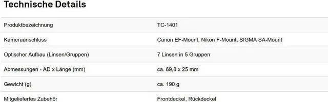 Sigma 1.4x Teleconverter TC-1401 for Nikon