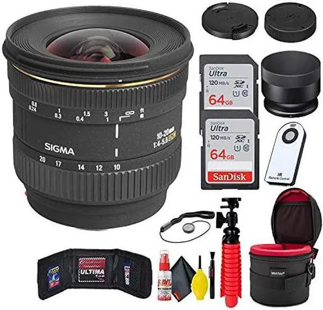 • Bundle Items Include: 1 x SIGMA 10-20MM F/4-5.6 EX DC F/ SONY A Mount + 2 x 64GB SD Card + Lens Cap + Lens Case + Wireless Remote Shutter + Tripod + Memory Card Wallet + Cleaning Kit. EX lens series denotes excellence of engineering and new technology. Correction for various types of aberration provided by three SLD (Special Low Dispersion) glass element and two aspherical lenses. The (Internal Focusing) design offers smooth and fast autofocus and non-rotating filter attachment. KEY FEATURES: Zoom Super Wide Angle