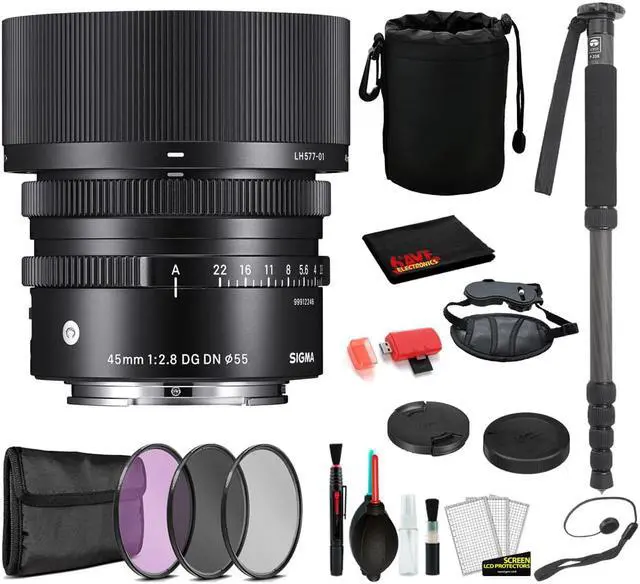Sigma 45mm f/ 2.8 DG DN Contemporary Lens for Sony E Mount with: Pro Series Monopod, 3PC Filter Kit + More