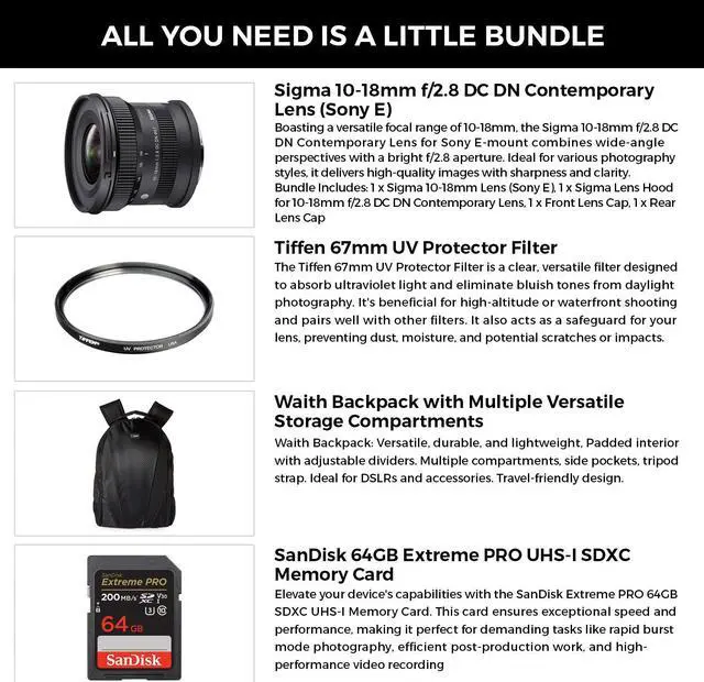 Explore creativity with the Sigma 1018mm f/2.8 Lens for Sony E. The lens is compact, dust-resistant, and splash-resistant, making it ideal for low-light situations and diverse photography styles.