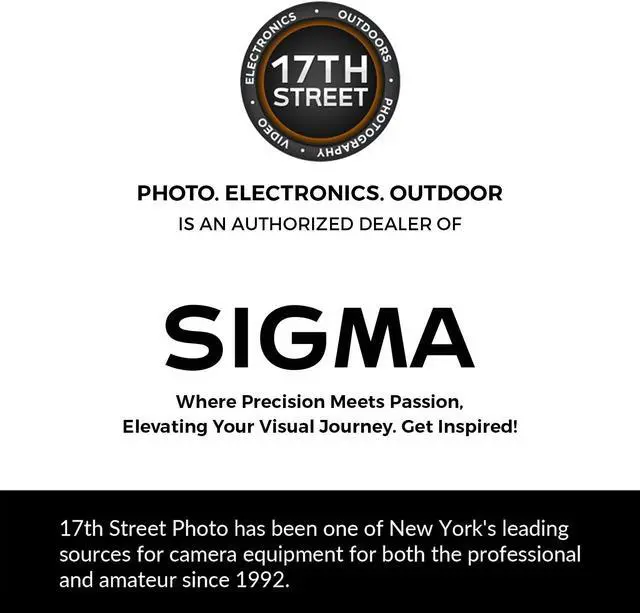 SIGMA, an industry leader, Founded in 1961, crafting innovative tools for photography and video. From the versatile 1018mm f/2.8 DC DN Contemporary Lens to the professional-grade 24-70mm f/2.8 DG OS HSM Art Lens, Sigma caters to both professionals and enthusiasts, offering wide apertures, precise autofocus, and durable construction. Sigma's global legacy is renowned for inspiring creativity and delivering excellence in visual storytelling through cutting-edge imaging solutions.