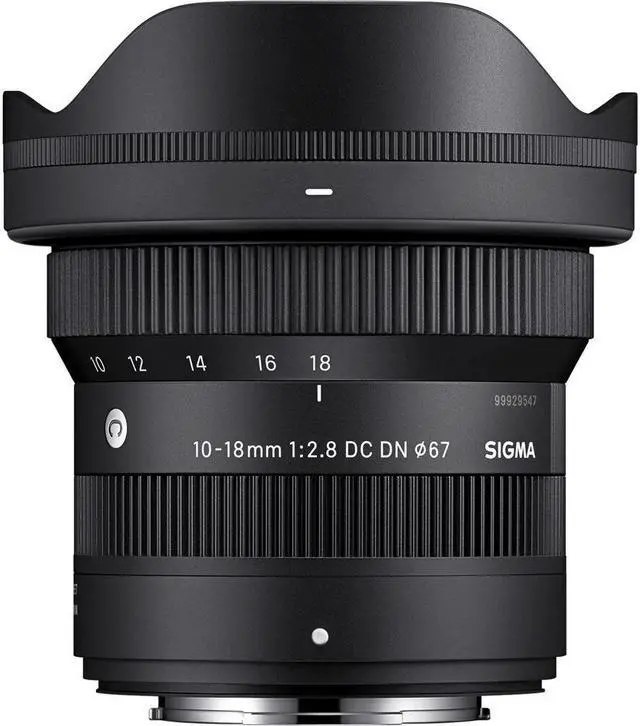 Compact yet powerful, the Sigma 10-18mm f/2.8 DC DN lens is a versatile companion for travelers, vloggers, and family photographers seeking top-notch image quality and mobility. Its f/2.8 aperture and 7-blade diaphragm ensure stunning low-light performance and beautiful bokeh. Sigma's push-on petal lens hood adds convenience without compromising compactness. Covering a 15-27mm focal range (full-frame equivalent), with a 4.6" minimum focusing distance and 1:4 maximum magnification ratio, it offers versatility for various shooting needs. Additionally, its dust and splash-resistant structure ensures durability. Compatible with Adobe lens correction profiles for distortion and vignetting correction.