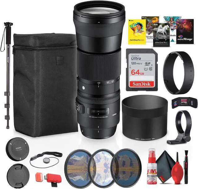 The Optical Stabilizer technology reduces the effects of camera shake, allowing for sharper handheld shooting. Additionally, a removable rotating tripod collar provides stable support when using a tripod or monopod. With its weather-resistant design, compatibility with optional teleconverters, and convenient zoom lock switch, the Sigma 150-600mm is a durable and reliable option for various types of telephoto photography. This Bundle Includes