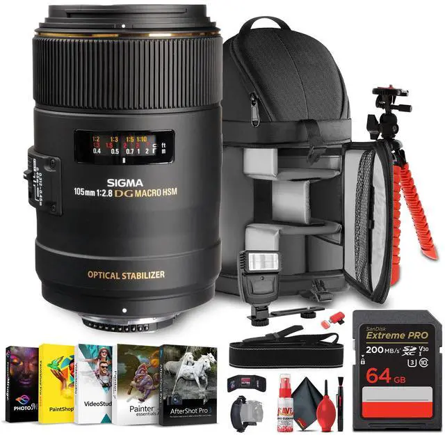 Capture stunning macro shots with the Sigma 105mm f/ 2.8 EX DG OS HSM Macro Lens for Nikon F. Perfect for close-ups, this lens offers 1:1 life-size magnification and a minimum focusing distance of just 1 foot. Featuring two Special Low Dispersion (SLD) elements, it effectively reduces chromatic aberrations and color fringing, ensuring clear, vibrant images.