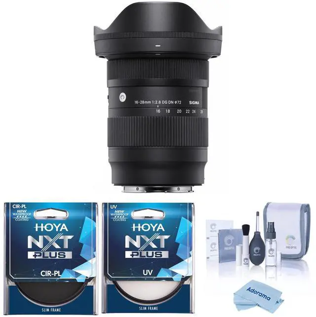 Experience the exceptional performance of the SIGMA 16-28mm F 2.8 DG DN | Contemporary Lens for L Mount, bundled with Hoya 77mm UV and CPL Filters. This high-performance, ultra-wide zoom lens offers a constant F 2.8 aperture, delivering uncompromising optical performance within a compact and lightweight body. Designed for L-mount shooters, this lens opens up new possibilities for those seeking professional results in a portable package. Its excellent field curvature correction ensures edge-to-edge sharpness, a critical feature for wide-angle applications. The lens is equipped with five FLD elements and four aspherical lens elements, minimizing aberrations and ensuring optimal image quality.
