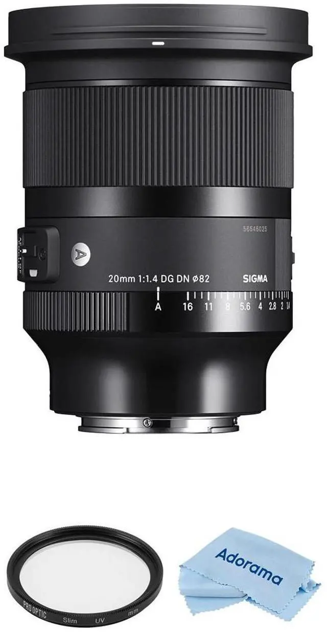 How does the Sigma 20mm f/ 1.4 DG DN Art Lens for Sony E, bundled with an 82mm multi-coated UV slim filter and microfiber cleaning cloth, redefine the boundaries of astrophotography This lens, a part of the esteemed Sigma Art line, is designed to deliver the highest optical performance and rich expression, making it the ultimate choice for capturing the night sky in all its glory. The full-frame Sigma 20mm f/ 1.4 DG DN Art Lens is a mirrorless version of the Sigma 20mm f/ 1.4 DG HSM Art. It's the only lens of its kind, boasting a maximum aperture of 1.4 and an ultra-wide angle of 20mm.