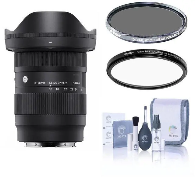 • INCLUDED - Sigma 16-28mm f/2.8 DG DN Contemporary Lens, Hood, Front & Rear Caps, 72mm UV & CPL Filters, Cleaning Kit, Sigma 1 Year Warranty for comprehensive protection.