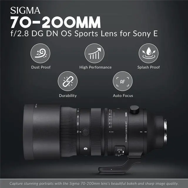 OS modes: Mode 1 for general shooting and Mode 2, ideal for panning shots in sports photography. Designed to minimize focus breathing, this lens ensures natural-looking focus shifts when recording videos. It also effectively reduces flare and ghosting, ensuring clear and sharp images under any lighting conditions. Despite its compact size, the SIGMA 70-200mm F 2.8 DG DN OS Sports Lens offers high durability and quality, thanks to the use of cutting-edge materials like magnesium, CFRP, and TSC. The lens is also dust and splash-resistant, making it suitable for shooting in harsh environments. The lens comes equipped with an aperture ring, a magnesium tripod mount, and various switches, providing a versatile shooting experience. The Focus Limiter switch allows users to limit the focus driving range during AF when necessary, ensuring quick and precise focusing. The lens also features three AFL buttons that can be assigned to preferred functions using the camera. In conclusion, the SIGMA 70-200mm F 2.8 DG DN OS Sports Lens for Sony E, bundled with Hoya 77mm UV and CPL Filters, is a professional-grade lens that combines superior optical performance, high-speed AF, and an optical stabilizer function, making it an indispensable tool for every photographer.