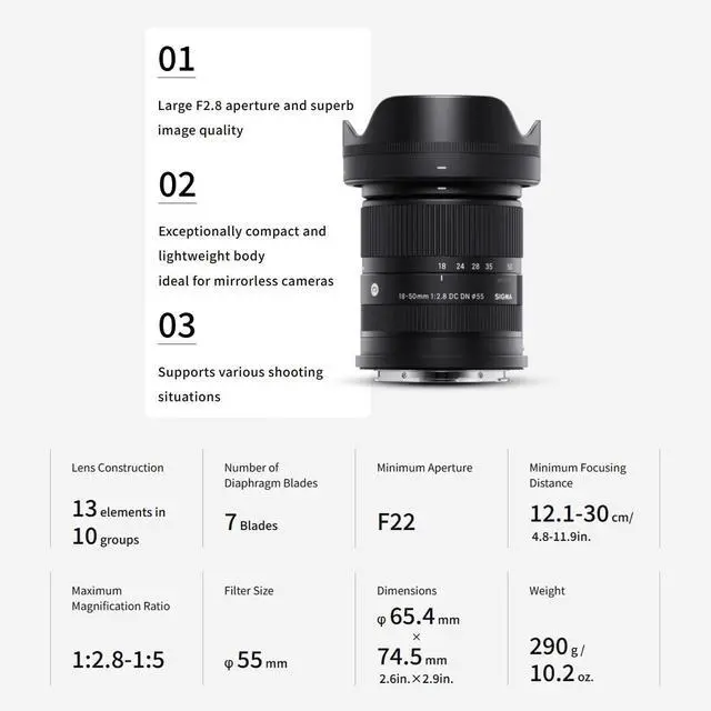 Sigma 18-50mm F2.8 DC DN Contemporary Lens, Canon RF Mount