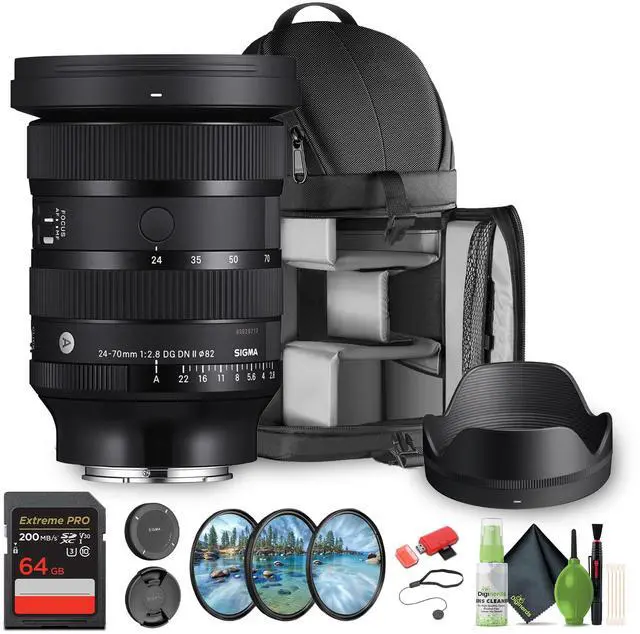 Elevate Every Shot with the Sigma 24-70mm f/ 2.8 DG DN II Art Lens for Sony E-Mount Experience professional-level performance in a lighter, more compact body with the Sigma 24-70mm f/ 2.8 DG DN II Art Lens. Designed exclusively for Sony E-mount mirrorless cameras, this upgraded version of Sigmas flagship standard zoom lens delivers stunning sharpness, beautiful bokeh, and lightning-fast autofocusall in a travel-friendly build. Engineered with six FLD, two SLD, and five aspherical elements, this lens minimizes chromatic aberration, ghosting, and flareresulting in vibrant, color-accurate images across the entire zoom range.