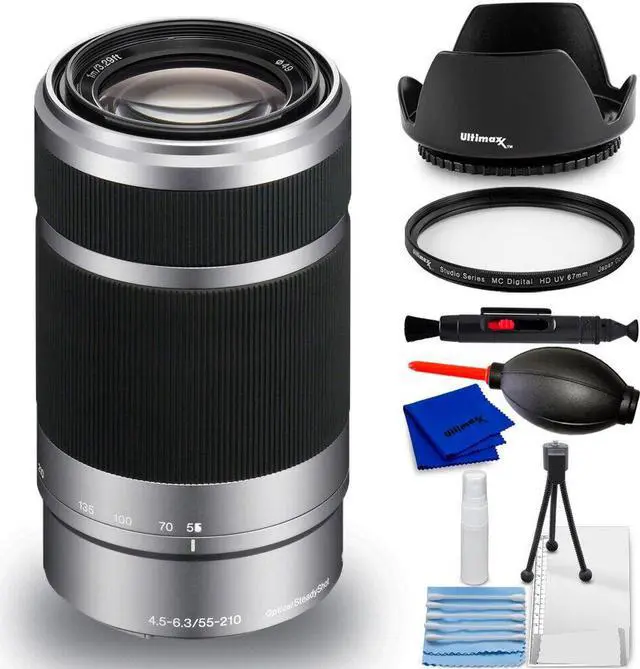 An ideal complement to many kit zooms, the silver E 55-210mm f/ 4.5 - 6.3 OSS Lens from Sony opens the door to many telephoto perspectives with its 82.5 -315mm equivalent focal length range on APS-C-format E-mount cameras. With an optical design using two extra-low dispersion elements and two aspherical elements users will enjoy images with minimal aberrations. Also, thanks to Optical SteadyShot image stabilization, camera shake will be dramatically reduced, resulting in sharper images. An internal focus design enables fast, responsive AF and a minimum focus distance of 3.3 '. Additionally, it has a seven-blade circular diaphragm for smooth, rounded bokeh.