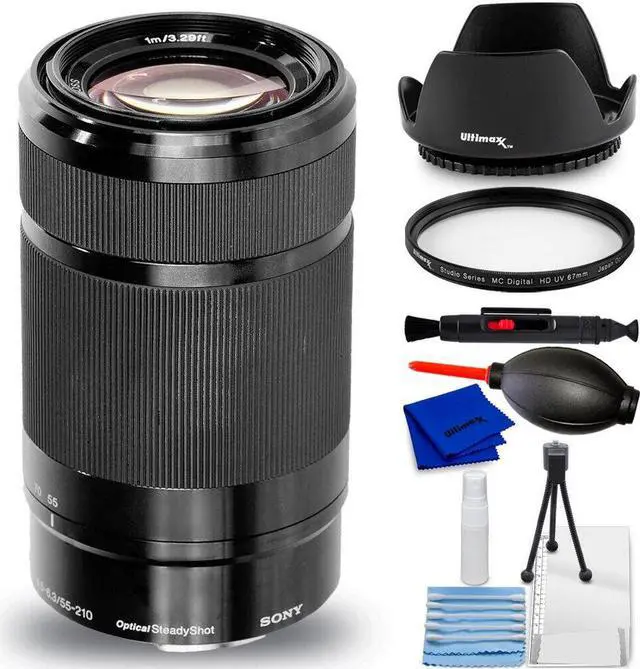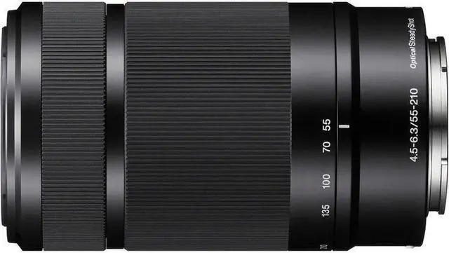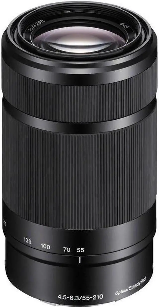 An ideal complement to many kit zooms, the black E 55-210mm f/ 4.5 - 6.3 OSS Lens from Sony opens the door to many telephoto perspectives with its 82.5 -315mm equivalent focal length range on APS-C-format E-mount cameras. With an optical design using two extra-low dispersion elements and two aspherical elements users will enjoy images with minimal aberrations. Also, thanks to Optical SteadyShot image stabilization, camera shake will be dramatically reduced, resulting in sharper images. An internal focus design enables fast, responsive AF and a minimum focus distance of 3.3 '. Additionally, it has a seven-blade circular diaphragm for smooth, rounded bokeh.
