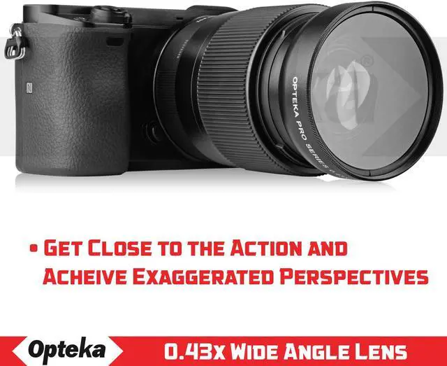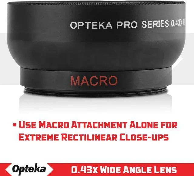 The new Opteka High Definition² .43x Ultra Wide Angle Converter Lens increases the versatility of your existing lens to provide breathtaking ultra wide angle views. And it's so easy to use! Additionally the built-in detachable macro lens allows you to take extreme high resolution close-up shots!