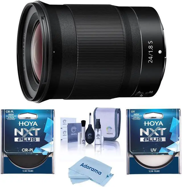 The Dual Detect 5 Axis VR, in conjunction with the Z camera's in-camera image stabilization, offers up to 5 stops of shake correction, further enhancing image sharpness and quality. The lens's next-generation Z design is not only aesthetically pleasing but also optimized for peak performance, with fast, quiet autofocusing ideal for both stills and video. Customizable on-lens controls cater to individual shooting preferences, ensuring a user-friendly experience that complements the lens's superior optical capabilities. In summary, the NIKKOR Z 24mm f/ 1.8 S Lens, bundled with the Hoya NXT Plus 72mm UV+CPL Filter Kit, Cleaning Kit, and Cleaning Cloth, is a comprehensive package that offers photographers and videographers an advanced, versatile tool for creating compelling, high-quality imagery.