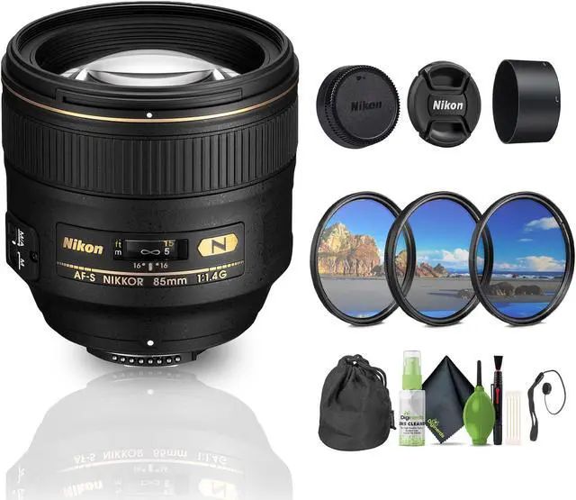 • Bundle Items Include:Nikon AF-S NIKKOR 85mm f/1.4G Auto Focus Lens, 3 Piece Filter Kit, Cleaning Kit, Lens Cap Keeper. Exceptional Clarity and Bokeh for Stunning Portraits: Capture stunning portraits with the Nikon AF-S NIKKOR 85mm f/1.4G Lens, designed for exceptional clarity and bokeh. Its fast f/1.4 aperture allows for beautiful background blur, making your subjects stand out with a natural, professional look. Ideal for portrait photographers seeking sharpness and depth in every shot, this lens ensures your images are sharp even in low light conditions.. Versatility and Reliability for Studio and Outdoor Photography: Experience versatility and reliability with this prime lens, perfect for both studio and outdoor photography. The 85mm focal length on a full-frame sensor provides a flattering perspective, emphasizing your subject while minimizing distortion. Whether capturing candid moments or formal portraits, the lens delivers consistent, high-quality results, catering to
