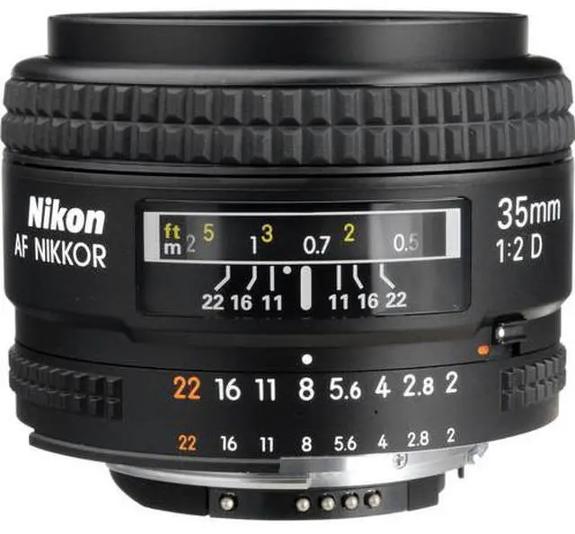One of the most popular focal lengths, the AF NIKKOR 35mm f/2D from Nikon is a comfortable wide-angle prime featuring a bright f/2 maximum aperture along with a compact, lightweight form factor. The slightly-wider-than-normal field of view along with the f/2 design excels in a variety of shooting conditions, ranging from landscape to street photography. A Super Integrated Coating has been applied to individual elements, and reduces lens flare and ghosting for increased contrast and color accuracy when working in bright and backlit conditions. Also, a rounded seven-blade diaphragm contributes to a pleasing bokeh quality.