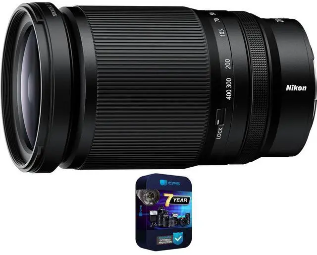 Product DescriptionThe NIKKOR Z 28-400mm f/4-8 VR Lens from Nikon offers a wide zoom range suitable for various photography tasks, including portraiture and event photography. It features quick autofocus and Synchro VR for up to 5.5 stops of image stabilization when paired with a compatible camera. This lightweight lens weighs only 1.6 lb, making it suitable for handheld shooting. It features 21 elements, a 9-bladed diaphragm, a 77mm filter thread, a compact square lens hood, and a 7.9 minimum focusing distance at 28mm. Product Highlights• Wide Focal Length Range• Vibration Reduction Technology• High-Quality Results-Minimal Distortion• LightweightProduct Features• 28-400mm 14.2 x Zoom Range•