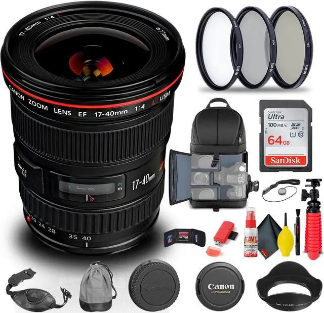 Canon EF 17-40mm f/4L USM Lens (8806A002) + Filter + BackPack + 64GB Card + More