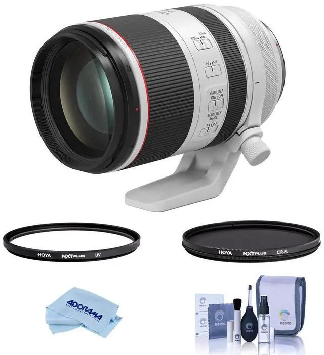 This bundle enhances the lens's versatility with the inclusion of a Hoya NXT Plus 77mm CPL filter, which reduces glare and enhances color saturation, and a 77mm UV lens filter to protect the front element from scratches and reduce haze. The cleaning kit and microfiber cloth ensure that your lens remains in pristine condition for consistently flawless image capture. Designed for use with a range of Canon EOS R series cameras, from the EOS R10 to the EOS R6 Mark II, this lens is a versatile and durable choice for professionals seeking to elevate their photography and videography work.
