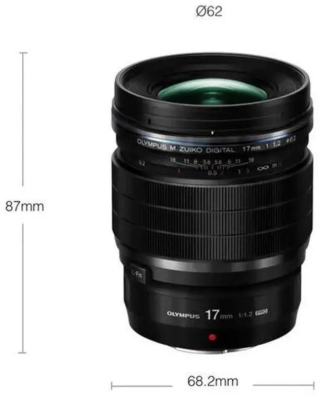 The Olympus ED 17mm f/ 1.2 PRO is a versatile wide-angle, 34mm-equivalent prime for Micro Four Thirds mirrorless cameras. The lens's calling card is its fast f/ 1.2 maximum aperture, which suits working in difficult lighting conditions and avails greater control over depth of field. Also, a complex 15 elements, 11 groups construction combines extra-low dispersion, aspherical, and high refractive index elements to significantly reduce both chromatic and spherical aberrations for notable image clarity, sharpness, and color accuracy. A nine-blade aperture is featured as well, to achieve a smooth bokeh quality when working with shallow depth of field techniques, and a Z Coating Nano has been applied to individual elements to limit flare and ghosting for improved contrast.