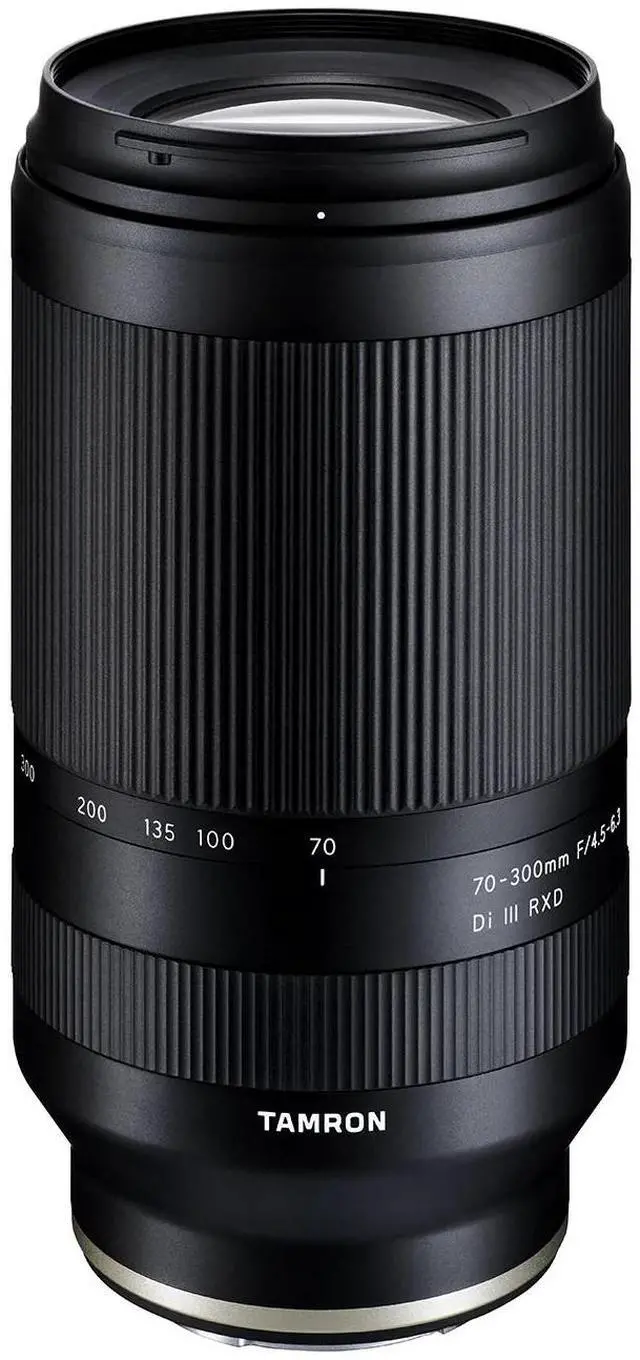The 70-300mm F/ 4.5 - 6.3 Di III RXD (Model A047) for Sony full-frame E-mount mirrorless cameras is a telephoto zoom lens designed and created so photographers of all skill levels can enjoy high quality images comfortably. It achieves the world's smallest size and lightest weight, coming in at 5.8 in. long with a maximum diameter of 77mm, and weighing just 19.2 oz. With special emphasis on resolving power, Tamron has deployed special lens elements appropriately arranged to correct chromatic aberration, generally very strong in a telephoto lens, as well as other aberrations.