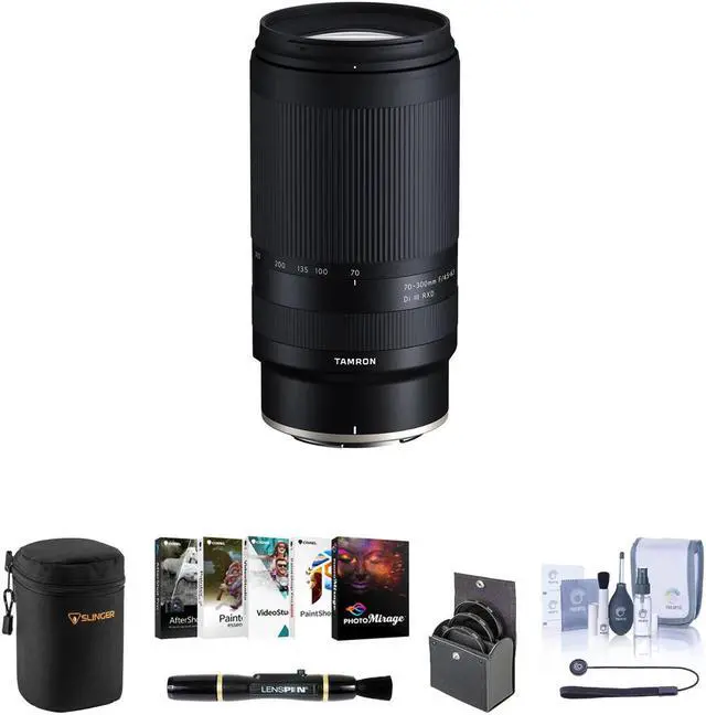 The lens also features Tamron's renowned BBAR (Broad-Band Anti-Reflection) Coating, which suppresses ghosting and flare, enhancing the overall image quality. The lens's circular 7-blade diaphragm ensures smooth, soft bokeh, beautifully accentuating subjects against a blurred background. The 70-300mm F/ 4.5 - 6.3 Di III RXD Lens for Nikon Z also features a high-performance autofocus system, powered by an RXD motor unit. This ensures fast, accurate, and quiet focusing, making it ideal for shooting moving subjects or recording video. This lens bundle also includes a Corel PC Software Kit, a 67mm Filter Kit, a Lens Case, Lens Cleaner, a Cleaning Kit, and a Universal Lens Cap Tether.