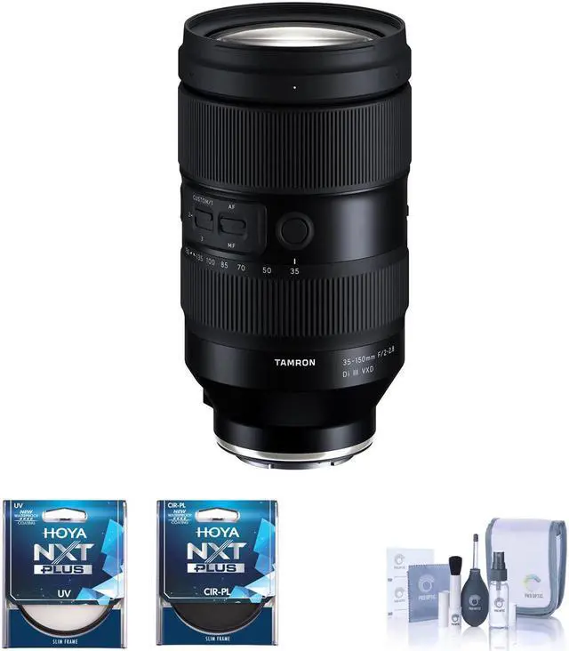 Overwhelm your senses with the high-quality and versatile 35-150mm f/2- 2.8 Di III VXD Lens for Sony E Bundle. This innovative lens, the world's first F2 all-in-one full-frame mirrorless travel zoom lens, is designed to capture breathtaking images, from expansive landscapes to intricate cityscapes. This reliable lens is a part of a comprehensive bundle that includes a Hoya NXT Plus 82mm Multi-Coated Circular Polarizer Lens and UV Filters, along with a cleaning kit. This combination provides added value and convenience, making it an ideal choice for both amateur and professional photographers.