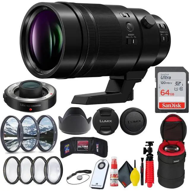 A big lens for the Micro Four Thirds system, the Leica DG Elmarit 200mm f/2.8 POWER O.I.S. Lens from Panasonic is a 400mm-equivalent super telephoto prime, developed in partnership with Leica, that promises sharp imagery and excellent handling. With a fast f/2.8 maximum aperture users can work in low-light conditions and create images with a shallow depth of field. Ensuring optimal image quality, the design incorporates two Ultra Extra-Low Dispersion (UED) elements that combat aberrations while a Nano Surface Coating is applied to minimize flare. Optimized for the capture of distant and fast-moving subject matter, this lens is equipped with a quiet triple linear motor autofocus system that has a 240 fps sensor drive for exceptionally fast performance in both stills and video. Also, a POWER Optical Image Stabilizer will compensate for camera shake and works with Panasonic's Dual I.S. and Dual I.S. 2.0 in-camera stabilization functions. Along with this, quick access lens controls, including a focus limiter, focus button, and focus memory switch, are available for tactile control over numerous settings. Further benefitting the professional nature of this optic is a splash, dust, and freezeproof design for use in less-than-ideal weather conditions. It is compatible with teleconverters for added reach and the DMW-TC14 1.4x Teleconverter is included for creating a 560mm-equivalent lens at the cost of one stop of light.