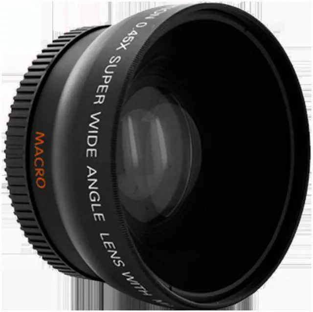 This is a premium 55mm wide angle lens with 0.45 x magnification for cameras and camcorders. The lens will multiply angle view of digital/video cameras by 0.45 times, which more than doubles the angle of view of the camera. It's great for landscapes or recording in situations where a little creative curvature of field is wanted for a certain style. This unique lens works on all Cameras & Camcorders with 55mm size Lens Filter thread!