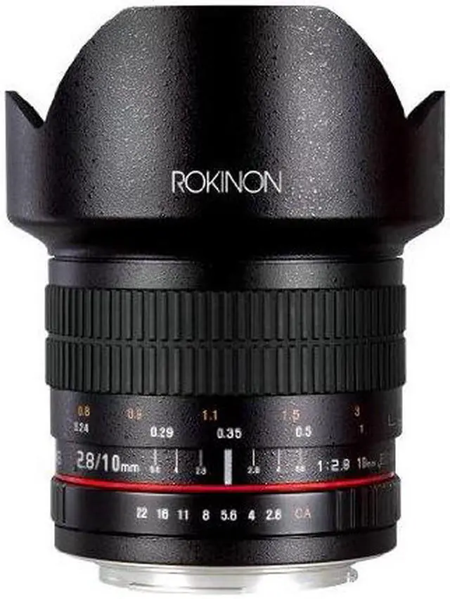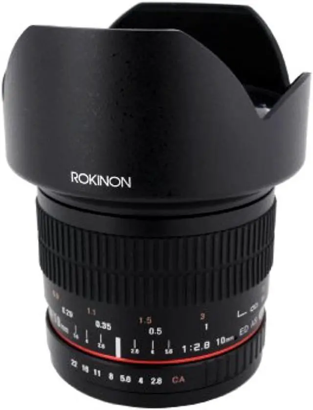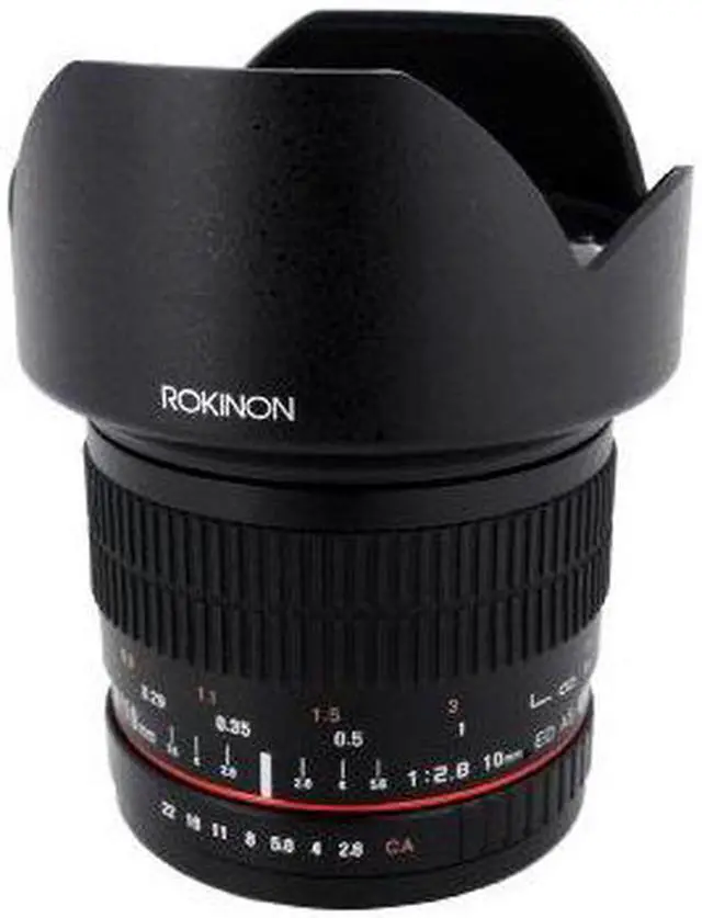 The Rokinon 10mm f/2.8 ED AS NCS CS Lens for Nikon F Mount is a prime, manual focus wide-angle lens designed specifically for use with APS-C sized image sensors. Providing a 35mm-equivalent focal length of 15mm and a broad 109.5deg. angle of view, this lens is ideally suited for interior, architectural and landscape photography applications. One extra-low dispersion element and two aspherical elements have been incorporated into the optical design to minimize chromatic aberrations and distortion in order to produce sharper images.