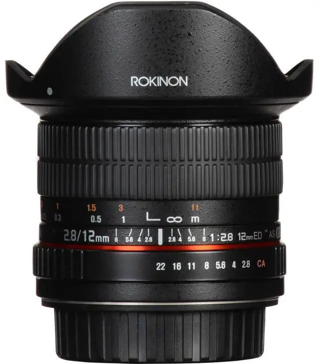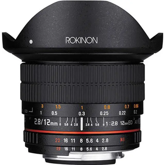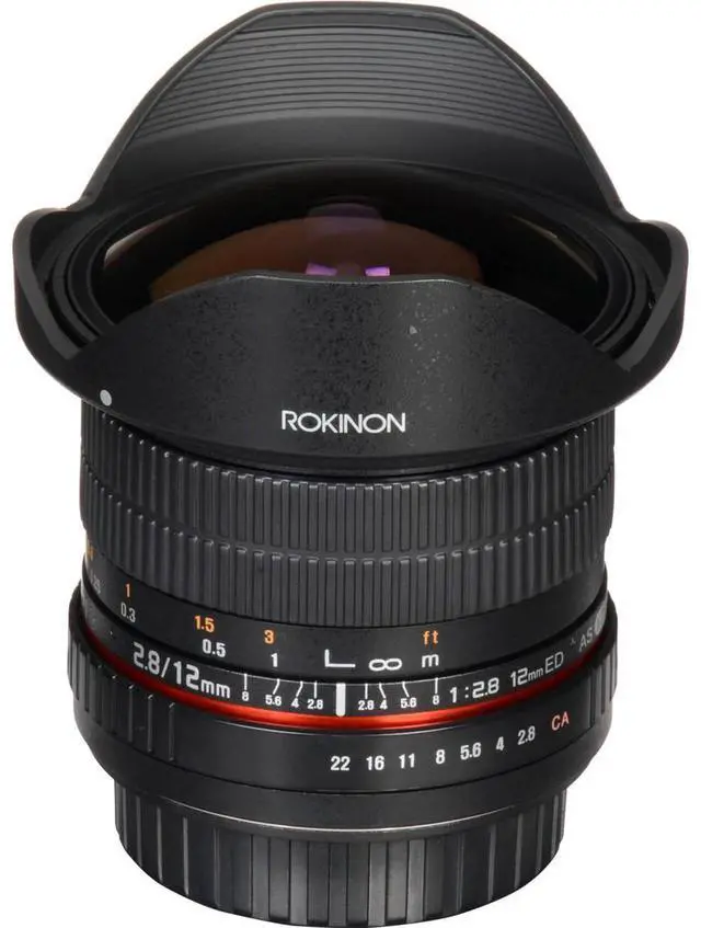 The internal focus system of the lens maintains its compact profile and prevents the front element from extending during focusing, preserving the lens's balance and handling. The sturdy metal barrel ensures the lens can withstand the rigors of professional use, and the removable petal-shaped lens hood offers additional protection against stray light and physical impacts. Whether you're a professional photographer looking for a versatile, high-quality fisheye lens or an enthusiast eager to explore the creative possibilities of ultra-wide-angle photography, the Rokinon 12mm F 2.8 Full Frame Fisheye Lens is an innovative choice that promises to inspire and deliver exceptional results.