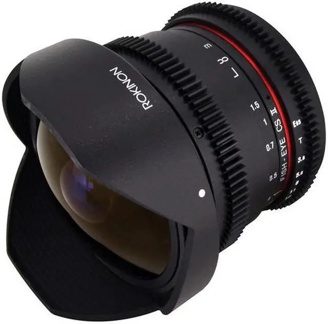 The Rokinon 8mm T/ 3.8 Fish Eye HD Cine Lens is a Fisheye lens with a 180° field of view that features a use on cameras and camcorders with a Sony E Mount. This lens provides the signature fisheye distortion on full frame and APS-C sized sensors, without having to add additional optics or post production image processing that can severely degrade image quality. Designed for shooting HD video, it features a silent iris ring for smooth iris pulls and both the focus and iris rings have built-in gears to accommodate follow focus and iris motors.