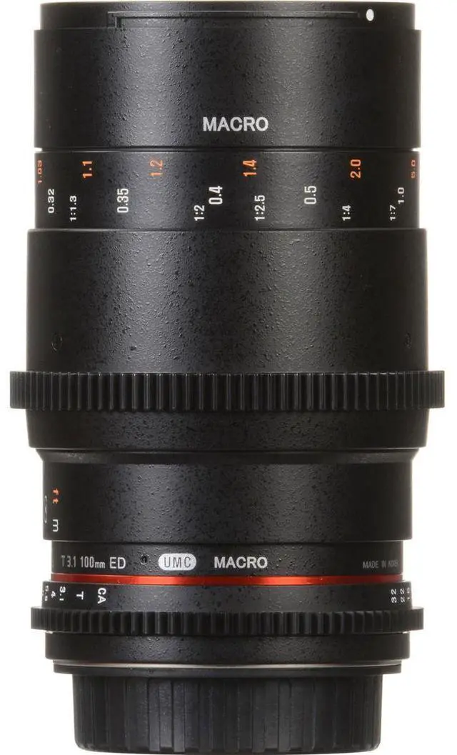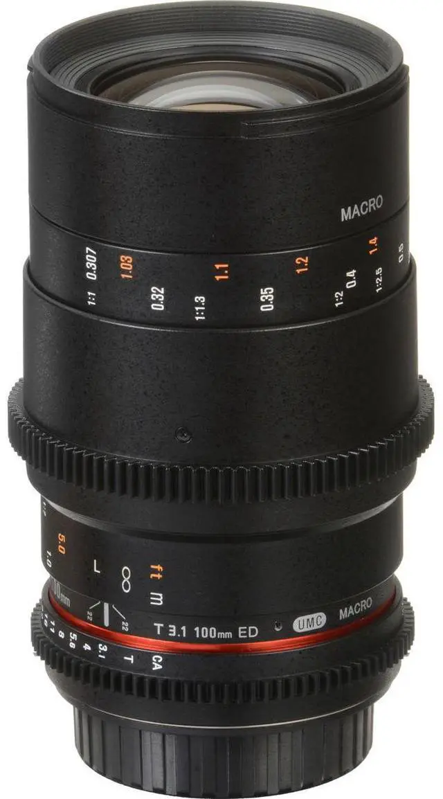 For professional photographers and videographers seeking a high-quality, durable, and versatile lens, the Rokinon 100mm T 3.1 Macro Cine DS Lens for Micro Four Thirds is an exceptional choice. This innovative lens boasts a multi-layer coating process, ensuring consistent color rendition from lens to lens, making it an ideal addition to your lens collection. Designed with industry-standard geared focus and iris rings, this lens shares common positioning with other Rokinon Cine DS lenses, enhancing its compatibility and ease of use. To facilitate the work of focus pullers, the aperture and focus scales are conveniently marked on both sides of the lens, a feature that underscores its user-friendly design.
