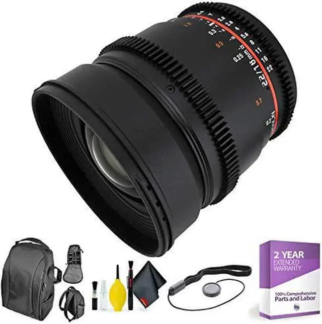 ROKINON 16MM T/ 2.2 WIDE LENS NIKON Combo DealLens Specs: Covers APS-C Sized SensorsStandard Gearing for Focus and IrisDe-Clicked Aperture RingAspherical Lens ElementsWhat's In The Box: More Items Included With Your Purchase: 1 x Lens Cap Keeper1 x Camera Backpack1 x Lens Pen1 x Lens Dust Blower1 x Deluxe Lens Cleaning Kit1 x FiberClothSpecial 2 Year Extended Warranty