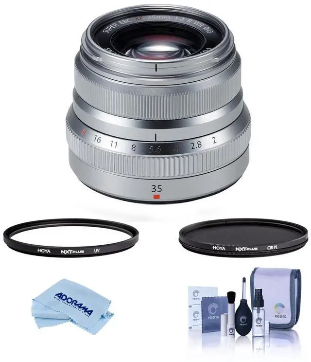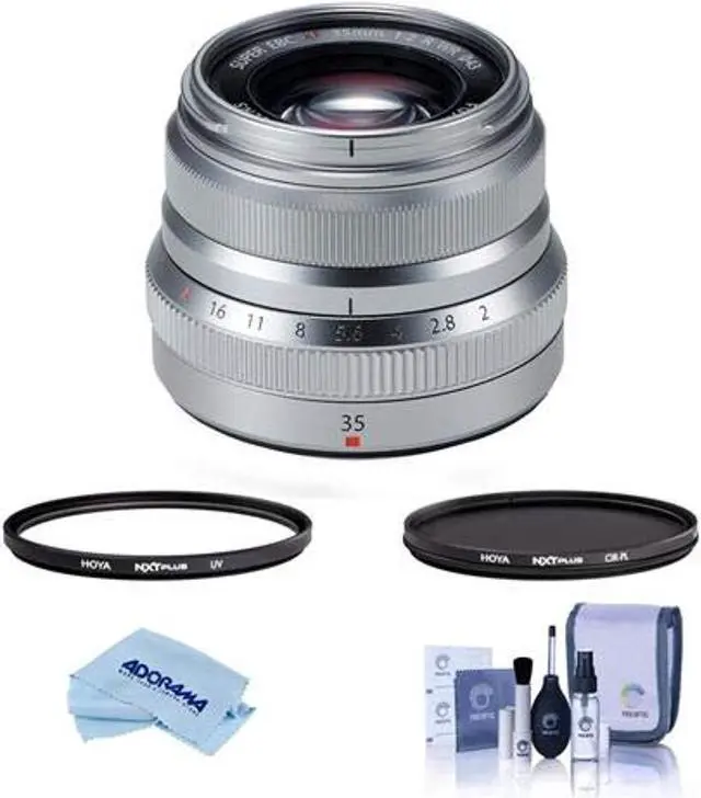 The XF35mmF2 R WR lens comes with two types of lens hoods to block unnecessary light and maintain optimal optical performance. A lightweight and compact circular lens hood is included, and a stylish metal hood LH-XF35-2 is available for purchase as an optional accessory. Both hoods are designed to allow the use of the front lens cap while attached. Whether you're into portrait, street, or reportage photography, this lens's fast autofocus, high image quality, and compact design make it a new standard for photography enthusiasts. The bundle also includes a Hoya NXT Plus 43mm CPL Filter, a 43mm UV Lens Filter, a cleaning kit, and a microfiber cloth, providing everything you need to keep your lens in top condition and your photography game strong.
