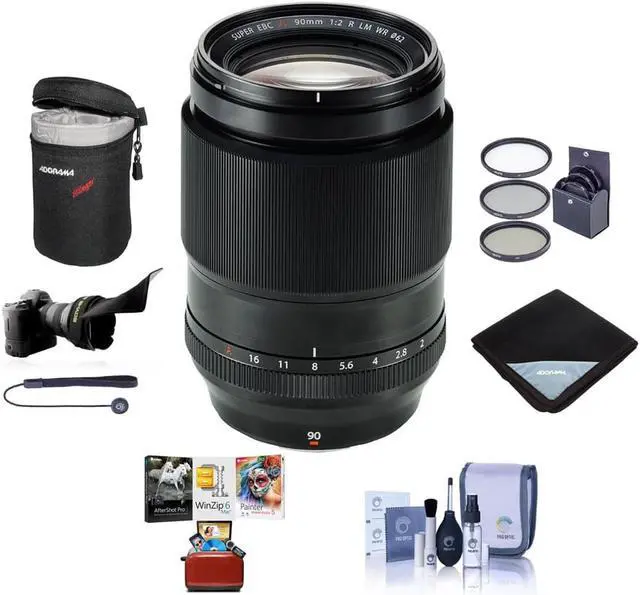 Enhance your photography experience with the FUJINON XF90mmF2 R LM WR lens from Fuji, a compact, weather-resistant prime lens that excels in delivering ultra-sharp images with rich, aesthetic bokeh at all aperture settings. This lens, equivalent to 137mm in 35mm format, boasts an advanced optical construction of 11 elements in 8 groups, inclusive of three Extra-low Dispersion (ED) glass elements. This design significantly minimizes vignetting and produces attractive bokeh, making it an ideal choice for both portraiture and sports photography. Despite its large maximum aperture, the FUJINON XF90mmF2 R LM WR lens maintains a compact and lightweight profile, weighing in at less than 20 ounces.