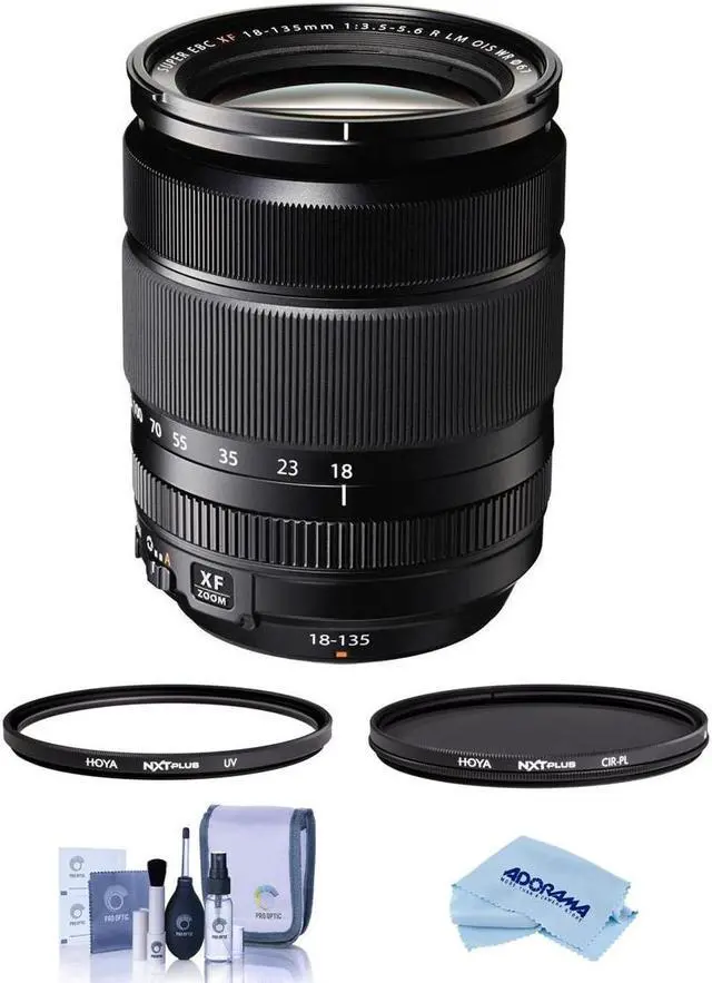 This bundle enhances the lens's capabilities with the inclusion of a Hoya NXT Plus 67mm CPL Filter for reducing reflections and enhancing color saturation, a 67mm UV Lens Filter to protect against scratches and reduce haze, a Cleaning Kit to keep your lens in pristine condition, and a Microfiber Cloth for gentle, effective cleaning. In summary, the Fujifilm XF 18-135mm f/ 3.5 - 5.6 R LM OIS WR lens, paired with its comprehensive bundle, stands as a testament to Fujifilm's commitment to providing photographers with tools that are not only high-performing but also adaptable to a variety of shooting environments.
