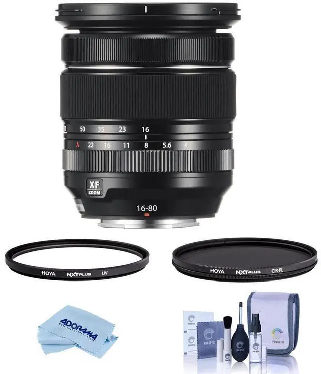 This bundle also includes a Hoya NXT Plus 72mm CPL Filter, 72mm UV Lens Filter, Cleaning Kit, and Microfiber Cloth, providing you with all the essentials for maintaining and protecting your lens. Whether you're embarking on an adventure or crafting the perfect portrait, the XF 16-80mm f/ 4.0 R OIS WR Lens is your key to unlocking greater creativity.