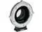 The adapter's optical features include a Canon EF mount lens to Blackmagic Design cameras with M43 mount, specific for BMPCC4K. It increases the maximum aperture by 1-stop, with a maximum output aperture of f/0.9, and enhances MTF. It also makes the lens 0.71x wider, thanks to the patented 6-element/4-group optical design by Caldwell Photographic in the USA.