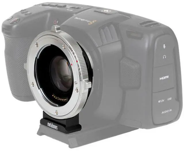Designed exclusively for the Blackmagic Design Pocket Cinema Camera 4K (BMPCC4K), the BMPCC4K Speed Booster ULTRA 0.71x Adapter cannot be attached to other M43 cameras such as JVC, Olympus, or Panasonic. This adapter reduces the crop factor of the BMPCC 4K camera from 2.02x to 1.43x, producing the largest aperture optics currently available, with an impressive maximum output aperture of f/0.9.