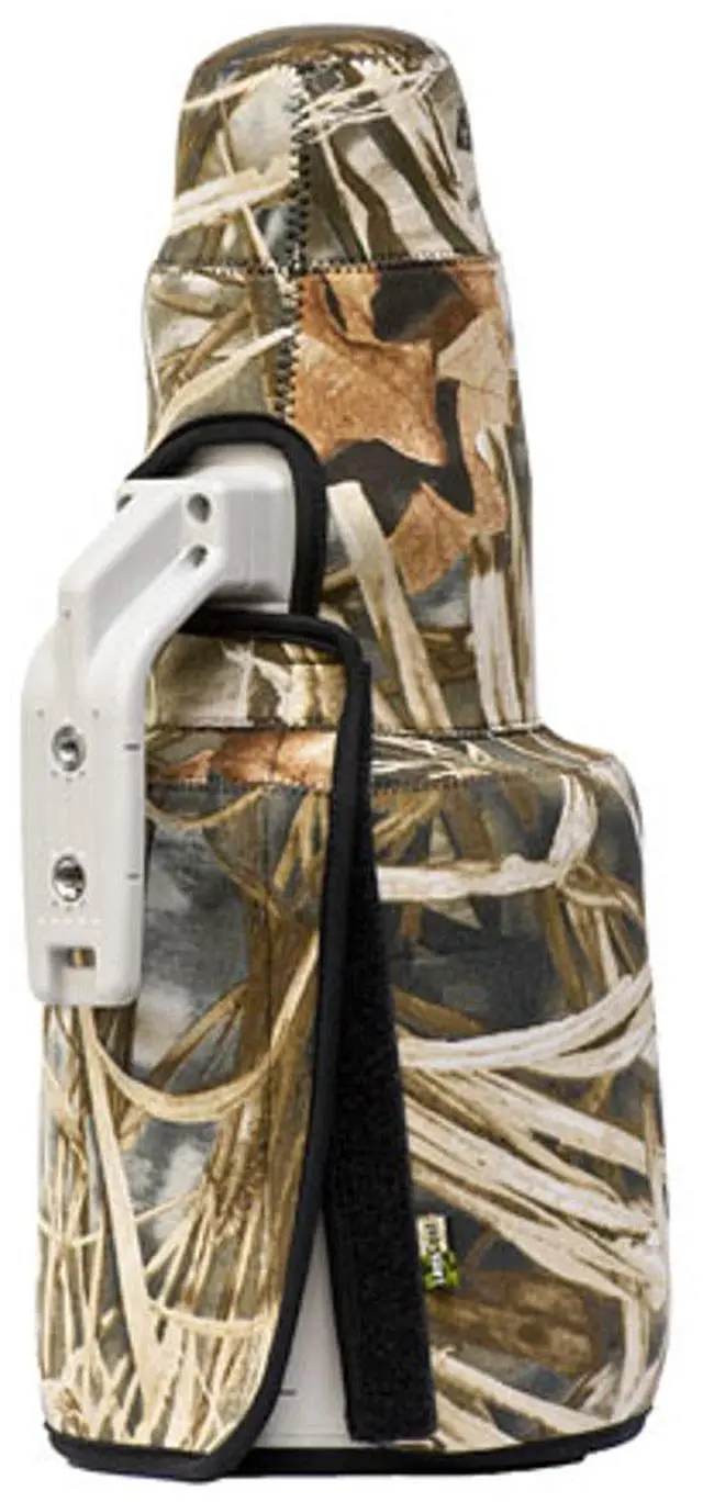 The LensCoat TravelCoat Cover for Canon 500 f/4 IS II Lens with Hood (Realtree Max4) is a 3mm thick shock-absorbing closed-cell neoprene lens cover that is custom tailored to fit the lens with its lens hood mounted in reverse position. It is designed to fully protect the lens from bumps, scratches and abrasions when not in use, without the need of a more traditional bulky lens case. The trim fit of the coat permits you to have extra storage space when you're packing for that long photo excursion - or even a day trip. The coat simply slides over the lens and closes with a secure touch fastener.
