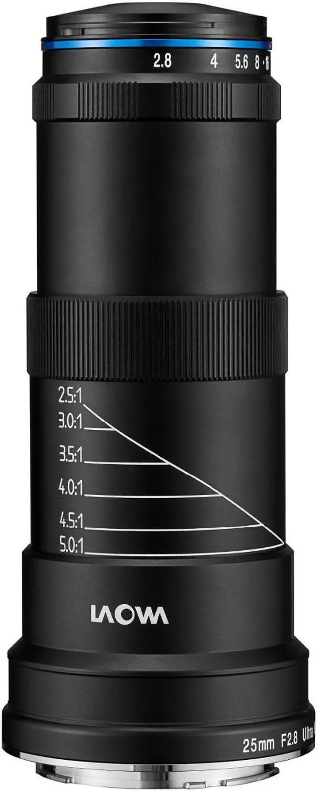 FeaturesExtended Working DistanceCarefully designed to extend the short working distance of traditional 25mm lens in order to provide sufficient room for lighting hitting the subject. 40mm @ 5:1 - 45mm @ 2.5: 1Superb Optical Performance8 elements in 6 groups with an extra low dispersions elements to deliver an unprecedented corner to corner sharpness. Small & Light Lens BarrelLaowa 25mm f/ 2.8 2.5 -5X Ultra Macro has one of the smallest & lightest barrel of lenses in its class. This allows more light to gather on subject and convenient to use in fields.