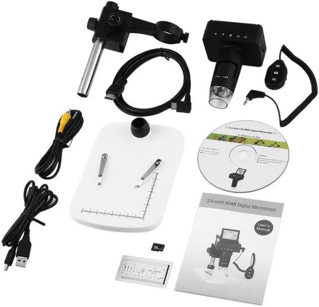 Specifications:Model: UM025Display: 2.4 inch LCDMagnification Ratio: 10x to 220xImage sensor: 3 Mega PixelsPhoto size: 3M, 5M, 8M, 12MVideo size: 1080P, 720P, VGAVideo output: HD/TV/USBFocus Range: Manual focus from 10mm to 50mmFrame Rate: Max 30f/s under 600 Lux BrightnessStorage: Micro-SD card), up to 32GMeasurement: Yes, when working as a USB microscopeLight source: 6 LED (adjustable by control wheel)Power source: Built-in Li-ion Battery or 5V DC-in Features:This LCD HD microscope integrating LCD/HD/TV/USB functions is highly useful for students, teachers, collectors, hobbyists, and testers etc to explore the microscopic world.