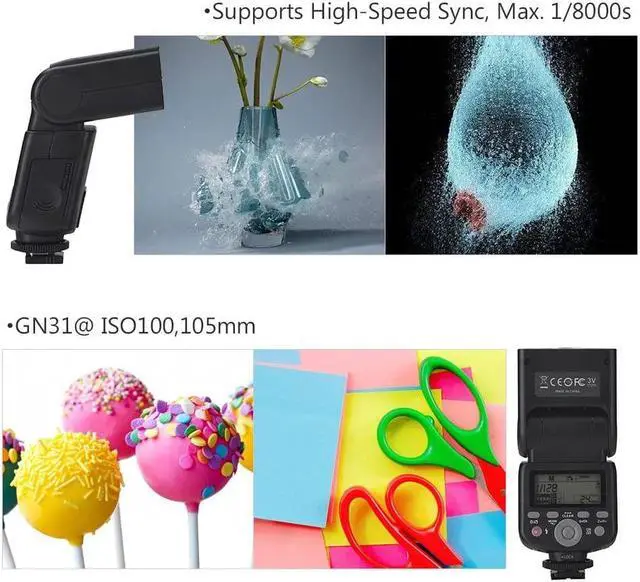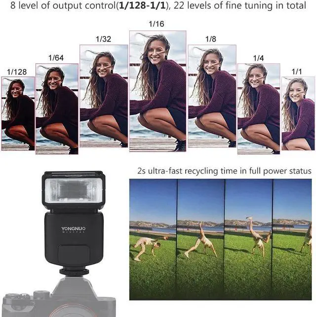 Specification:Guide No.: 31(ISO 100,105mm)Flash Model: TTL, M, MultiTrigger Mode: On-Camera, 2.4G Radio Trigger, Wireless Optical TriggerZoom Range: 24, 50, 70, 105mmVertical Rotation Angle: -7 to 90 degreesHorizontal Rotation Angle: 0-270 degreesPower Supply: 2 * AA alkaline battery or AA Ni-MH battery(not included)Flash Times: Approx. 220 timesRecycle Time: Approx. 2 seconds(with AA Ni-MH battery)Color Temperature: about 5600KFlash Time: 1/350s to 1/20000sFlash Control: 8 level of output control(1/128-1/1), 22 levels of fine tuning in totalExternal Interface: Hot Shoe, Micro USB PortTransmission Distance: 20-25m indoors, 10-15m outdoors for photo sensitive, up to 100m for radio triggeringAdditional Functions: Lamp head electric zoom, sound prompt, power saving mode, overheating protection, auto-save settingsItem Size: 4 * 6.5 * 15.4cm/ 1.6 * 2.6 * 6.1inItem Weight: 225g/ 7.9ozPackage Size: 19.5 * 9.5 * 8.5cm/ 7.7 * 3.7 * 3.3inPackage Weight: 400g/ 14.1ozNote:In Multi Mode/ radio flash shooting mode/ S1/S2 wireless flash mode, HSS is not supported. Features:Wireless Transmitter-receiver, Supports 2.4G Radio Triggering and Optical Triggering:--YN320EX is compatible with YONGNUO RF602/RF603 radio triggering signal and Sony optical transmission wireless triggering signal, and it can be used as a master unit or slave unit.High-speed Sync TTL Speedlite & Ultra-fast Charging Recycle System:--YN320EX supports TTL flash flash and high-speed sync(HSS). The maximum sync speed is up to 1/8000s; the recycling time for full output just takes 2s, high-speed charging recycling experience for you.Can Realize 6-group Flash Control Easily:--As a radio master unit, YN320EX supports controlling 6 separate groups. It can remotely control the flash mode, flash output, focal length, number of stroboscopic and stroboscopic frequency of YN560Li/Yn720/YN685/YN560III/YN560IV/YN660/YN860Li.Sound Prompt System & Flash Head Electric Zoom:--When the sound prompt system is enabled, the flash emits different sounds to indicate different working status; with ZOOM button, the flash head can circularly move in the coverage rang of 24mm-105mm.USB Firmware Upgrade:--YN320EX is equipped with USB port. The latest firmware can be download from the YONGNUO official website. Upgrade the firmware of YN320EX to keep it in best performance.