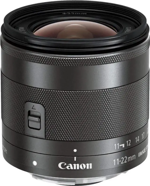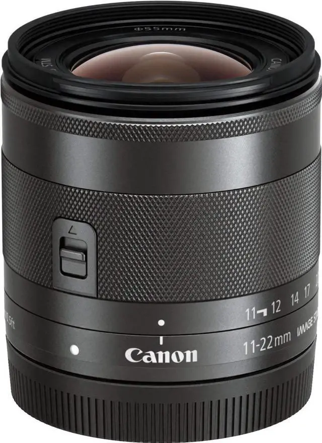 Canon 11 mm - 22 mm f/4 - 5.6 Ultra Wide Angle Zoom Lens for Canon EF-M - 55 mm Attachment. Open up your horizons with an ultra-wide angle lens||Capture dramatic landscapes with this ultra-wide angle 11-22mm EF-M mount zoom lens. Compact, lightweight and easy to carry with EOS Compact System Cameras, it delivers superb quality stills and movies.