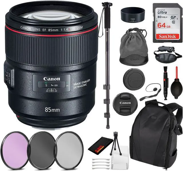 Canon EF 85mm f/ 1.4L IS USM Lens (2271C002) Essential Bundle Kit for Canon EOS - International Model No Warranty