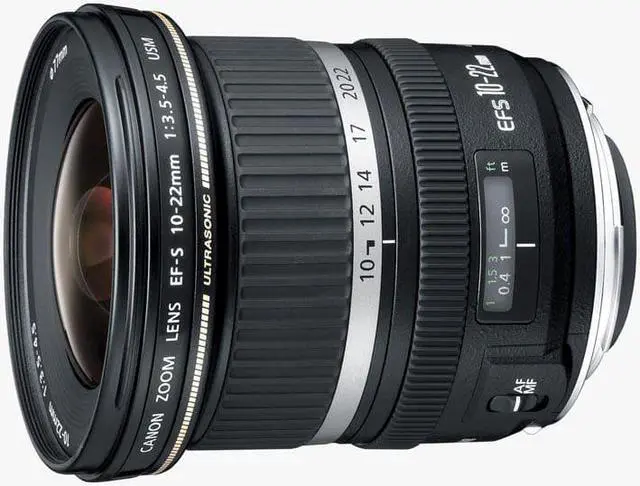 The Canon EF-S 10-22mm f/ 3.5 - 4.5 USM Ultra-Wide Zoom Lens provides ultra wide-angle coverage to the EOS 20D, 30D, 40D, 50D and Digital Rebel SLRs. Equivalent to a 16-35mm zoom, it offers excellent performance and optics designed from the ground-up for digital SLR use. Three Aspherical lens elements, plus a Super-UD element, assure image quality. Its ring-type USM means fast and silent AF along with full-time manual focus. It focuses as close as 9.5 inches.