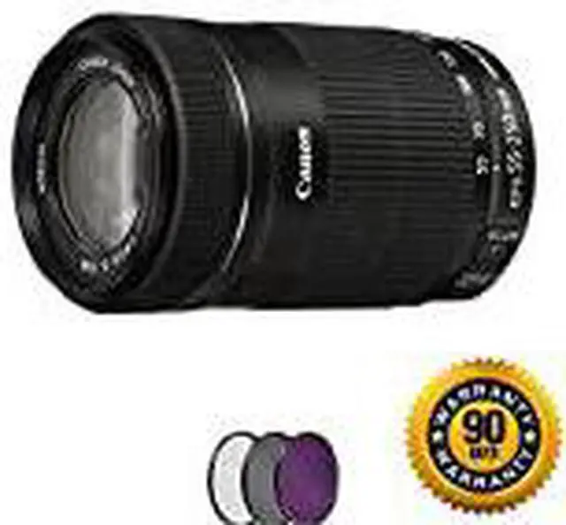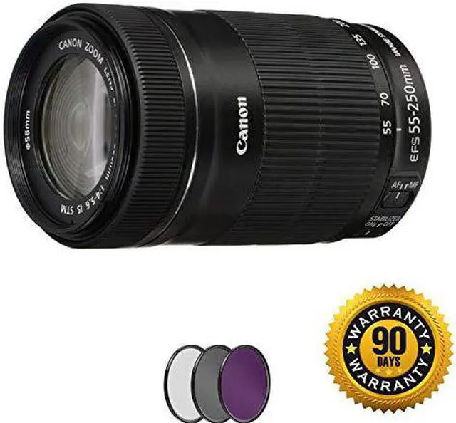 Suitable for distant subject matter, the EF-S 55-250mm f/4-5.6 IS STM is an 88-400mm-equivalent zoom for Canon APS-C DSLRs. This lens's long reach is enhanced by the inclusion of an Ultra-Low Dispersion element, which helps to greatly reduce color fringing and chromatic aberrations for greater clarity and color accuracy throughout the zoom range. A Super Spectra coating is also featured, and minimizes flare and ghosting in order to produce greater contrast when working in bright lighting conditions. Additionally, a four-stop-effective Image Stabilizer system is also featured and minimizes the appearance of camera shake for sharper handheld shooting. 90 Day Warranty Included with your Open Box Purchase. You are Covered!